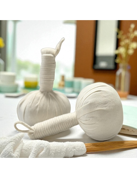 Balles de modelage aux herbes pour le corps pour une expérience stimulante & rafraîchissante. Les balles diffusent une senteur enivrante et une douce chaleur pendant le modelage, favorisant le bien-être et la relaxation. La circulation sanguine s’en trouve stimulée, le système immunitaire renforcé.