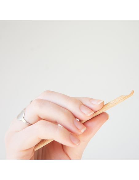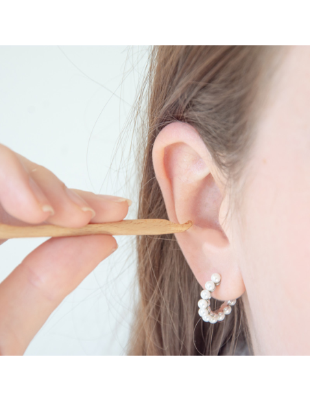 Utilisez l’Oriculi en bois comme une petite cuillère pour retirer le cérumen à l’entrée de votre conduit auditif. Inutile d’aller plus loin !