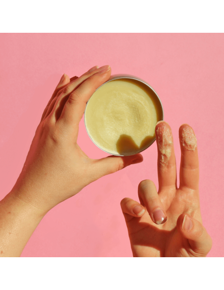 Prélevez un peu de baume du bout de vos doigts et massez. Pas besoin d’en mettre beaucoup !