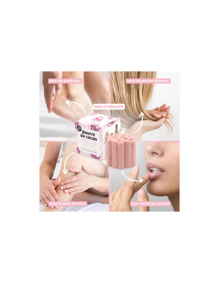 Le beurre de cacao nourrit votre peau en profondeur et sa composition est 100% d'origine naturelle. Praticité et sérénité pour prendre soin de votre peau.
