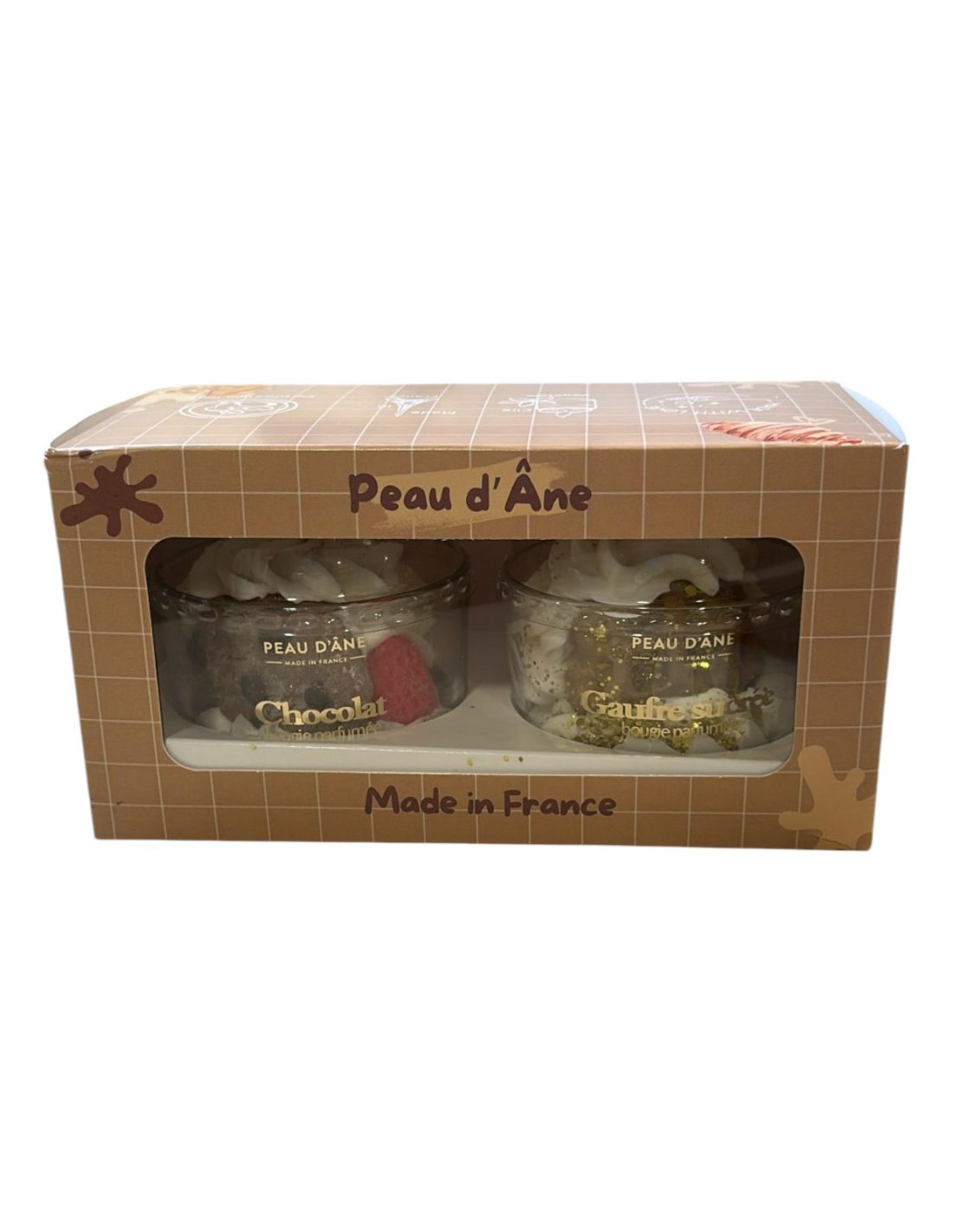 Coffret parfumé contenant une bougie chocolat un une bougie gaufre sucrée
