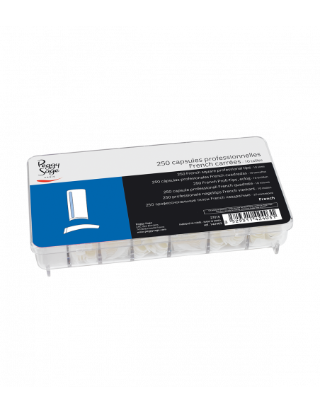 Il existe divers modèles adaptés à toutes formes d’ongles possibles. Chaque boîte contient des capsules rangées par taille décroissante. Un petit numéro sous la capsule permet de la ranger dans le bon compartiment.  Les capsules sont toutes initialement longues pour faciliter leur collage.