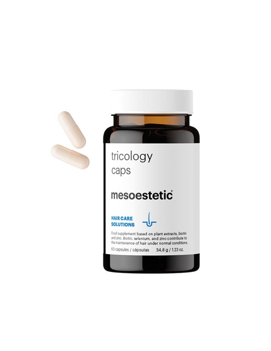 L-cistina, cobertura (celulosa, colorante (E-170), extractos secos de cártamo (Carthamus tinctorius, flor), nopal (Opuntia ficus-indica, cladodio) y Oryza sativa (gamma-orizanol), citrato de zinc, acetato DL-alfa tocoferilo (vitamina E), L-metionina, L-arginina base, L-seleniometionina, antiaglomerante (E-470b), almidón de maíz, D-pantotenato cálcico (vitamina B5), extractos secos de pimienta negra (Piper nigrum, fruto), colecalciferol (vitamina D3), clorhidrato de piridoxina (vitamina B6), biotina, cianocobalamina (vitamina B12).