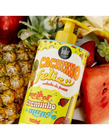 La crème coiffante Cachinho Feliz Salada de Fruta de la gamme Lola Kids de la marque Lola from Rio est conçue pour répondre aux besoins des cheveux bouclés des enfants (types 3B à 4C). Elle associe les bienfaits du beurre d'Ucuuba et des extraits de pomme et d'ananas, pour une formule naturelle à 98% d'ingrédients d'origine naturelle.