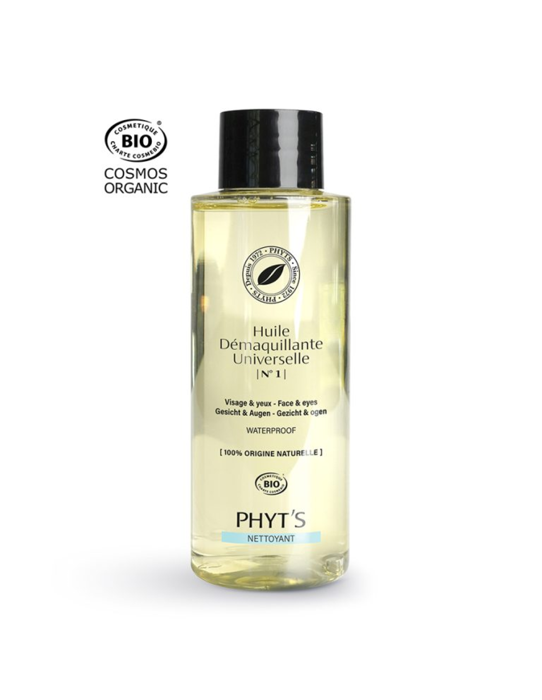 Huile Démaquillante Universelle est conditionnée dans un flacon en plastique recyclé comportant au moins 40% de matières recyclées et recyclable.
