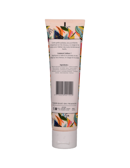 Une gelée pailletée ultra scintillante s'applique sur les cheveux, le visage et le corps pour réaliser des looks tendances et festifs.
