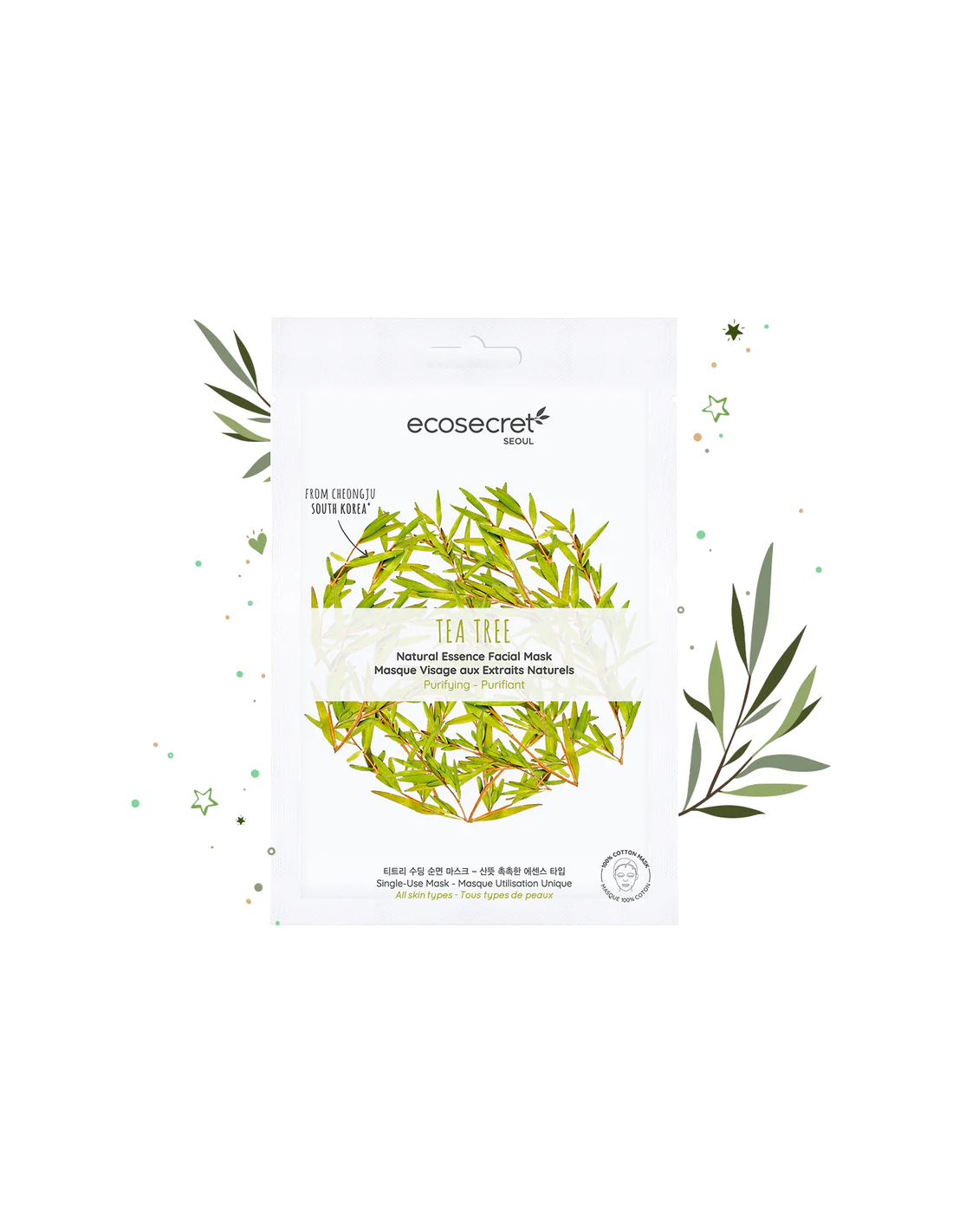 Tea Tree : Un masque visage tissu pour assainir tout en hydratant la peau.