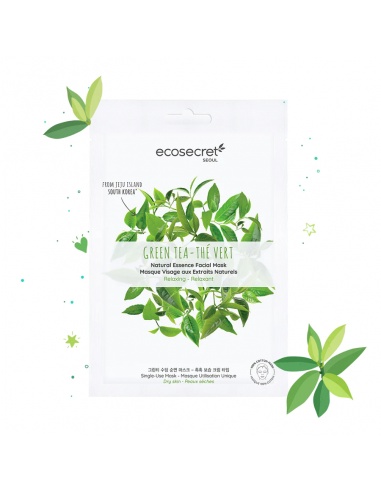 Thé vert : Un masque visage en tissu pour détendre et reposer la peau.
