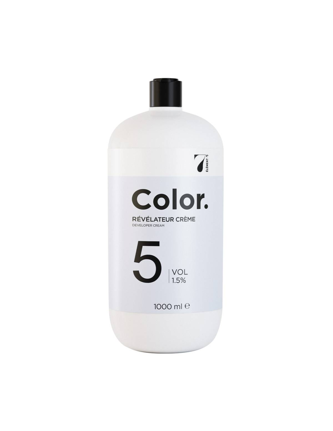 Le révélateur 5 Vol. Color. par 7e ÉLÉMENT est l’oxydant le plus doux de la gamme. Formulé à 1,5 %, il permet de corriger les reflets, de raviver l’éclat, ou de réajuster une nuance sans modifier la hauteur de ton ni altérer la fibre capillaire.