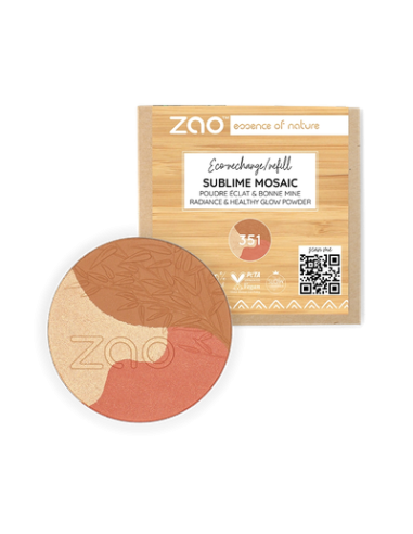 Ces poudres Sublime Mosaic, éclat et bonne mine sont composée de 3 poudres ZAO : un blush, une terre cuite et une shine-up powder. Elles permettent d’illuminer tout en donnant un effet hâlé très naturel et de structurer le visage. Les trois poudres peuvent être mélangées ou s’utiliser séparément pour retrouver leur fonction d’origine.