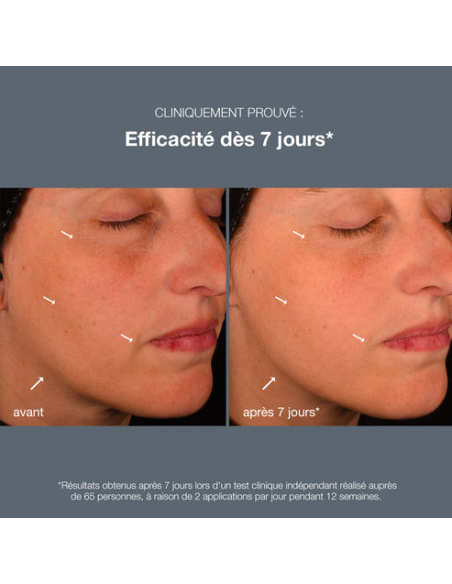 *Résultats obtenus après 7 jours lors d'un test clinique indépendant réalisé auprès de 65 personnes, à raison de 2 applications par jour pendant 12 semaines.