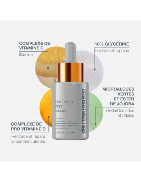 Ce sérum de nuit innovant associe la puissance de la vitamine C et de la vitamine D pour apporter à la peau une double dose d'antioxydants, afin de booster la régénération cellulaire nocturne et réparer les dommages cutanés causés durant la journée (pollution, UV, stress) tout en restaurant la barrière cutanée.