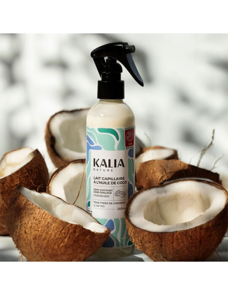 Le lait capillaire coco de Kalia Nature est un soin leave-in conçu pour accompagner le coiffage des cheveux texturés. Il se vaporise au quotidien sur chevelure sèche ou mouillée pour rafraîchir les boucles, hydrater les longueurs et faciliter le démêlage. Sa formule liquide riche en actifs d’origine naturelle réveille l’éclat des cheveux secs et les parfume d’une douce senteur tropicale.
